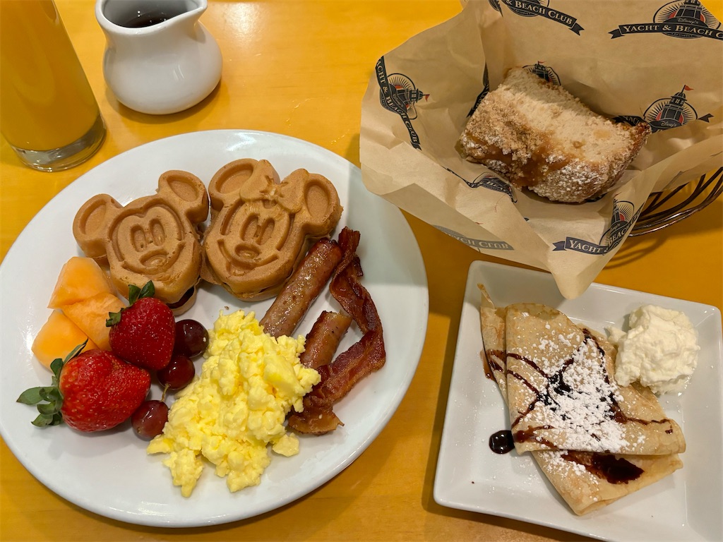朝はミニーのビーチバッシュ・ブレックファストという、ビュッフェスタイルのキャラクターダイニングになっています。